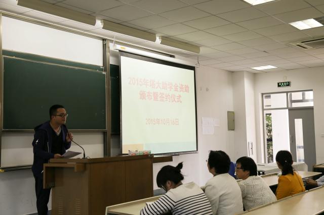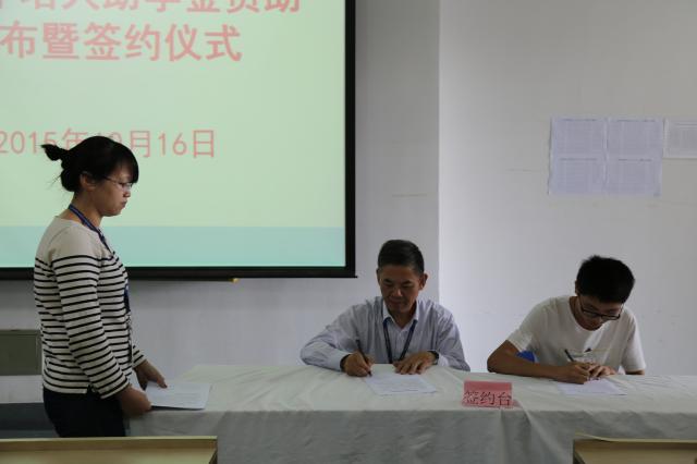 马春广老师宣读2014、2013级塔大助学金资助员工名单后,“3044永利集团贫困生资助备忘录”签约仪式正式开始。王经理代表公司与受资助员工签署了资助协议。随后,负责公司员工资助工作的李春老师向同学们详细地介绍了公司和公司针对家庭经济困难员工的资助政策与要求。