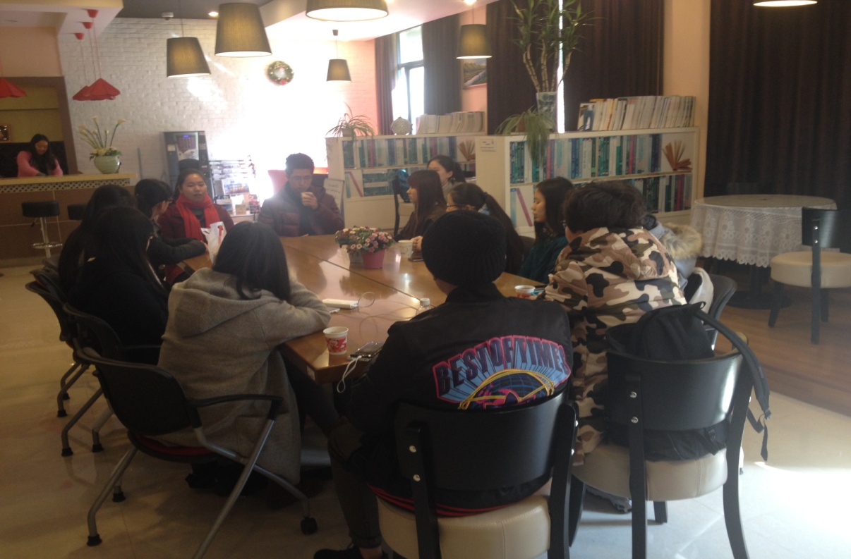 2015年12月4日13:00,阳光正好,伴着浓浓的咖啡香,由公司员工会郭虹老师组织的出国留学准备经验分享交流会在温馨的穿越时空实训基地里举行。2012级的两位非常优秀并已拿到名校Offer的张屹学长和顾晶莹学姐与有着同样目标的学弟学妹们交流着经验。