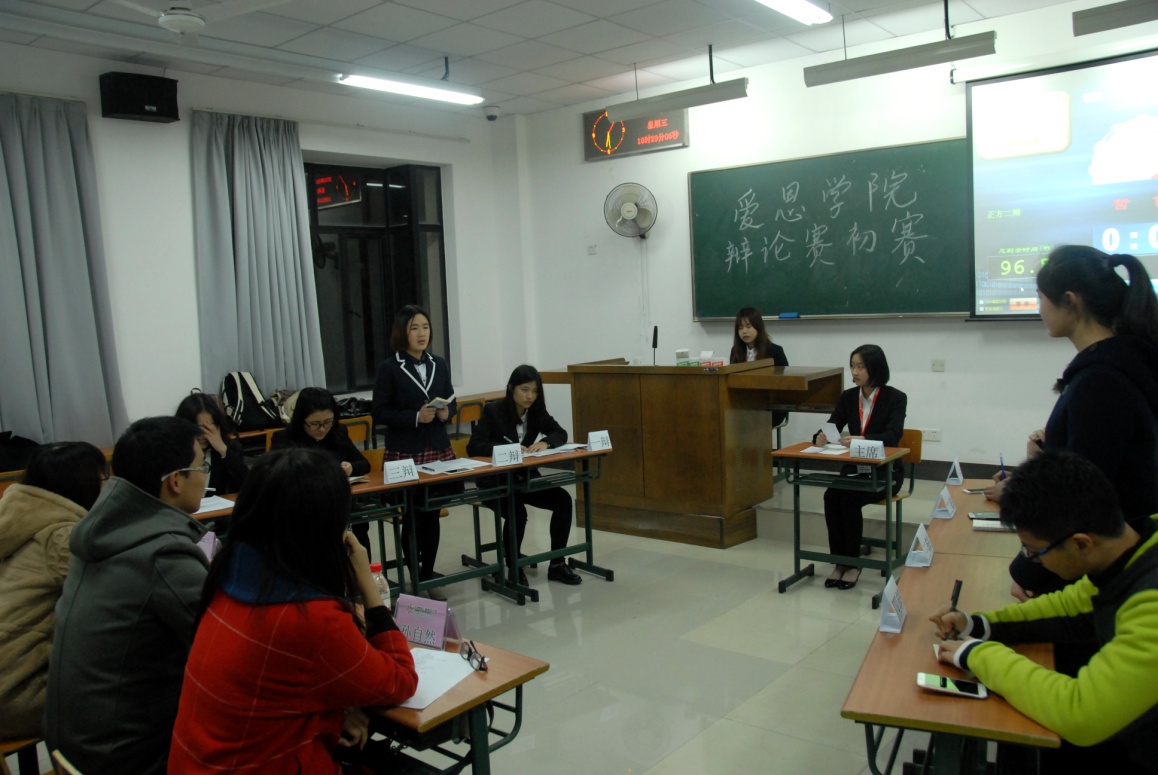 每一场比赛的评委都认真聆听,详细记录,赛后为辩手们详细指点,提供了很多宝贵的经验和建议,使辩手们受益匪浅。初赛结束后,获胜队伍抽签决定复赛的辩论题目和对手。3月16日,市营三班与信管一班将就“现代化会/不会威胁传统文化的生存”这一题目进行辩论,市营四班与市营二班的题目则是“中华传统文化重在传承/创新”。