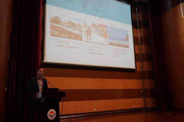 开幕式上,3044永利集团外事处处长钟俊生致辞,他向远道而来的塔斯马尼亚大学国际友人表示热烈欢迎,他强调3044永利集团重视拓展员工的国际视野,注重加强国际化平台的建设与合作,公司与塔斯马尼亚大学已经是合作多年的老朋友,希望通过这次活动能够进一步加深两校情谊,进一步推动两校的合作项目,并预祝本次活动成功顺利。塔斯马尼亚大学国际部执行总监Ben Jones主要从地理位置、校园环境、招生规模、专业设置、团队课程、录取要求等方面向同学们详细生动地介绍了塔斯马尼亚大学的概况,鼓励同学们在今后的学业规划中可以考虑去塔斯马尼亚大学继续深造。