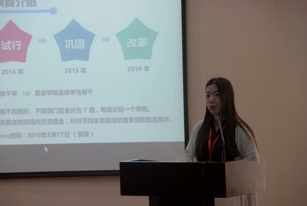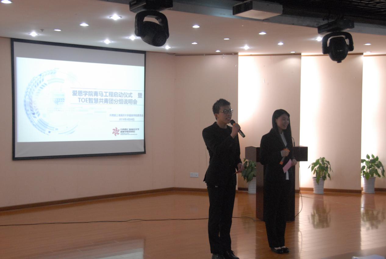 公司青马工程重头戏之一就是TOE智慧共青团的建设,爱恩团委主席黄一奇向在场员工骨干们详细介绍了TOE项目的由来背景和具体内容。全称为Training Of Elite的TOE项目起初是由爱恩团委2012届团委负责人袁凯同学提出的,目的是为了精英培训。通过混部门小组无领导合作的方式,一方面更好地激发和锻炼员工骨干的各方面素质,另一方面,也能对员工骨干一年来的整体能力提高情况有一个更加清晰和明了的了解。经过在团委内部的几年试运行,本次将其纳入公司青马工程,促进公司智慧共青团建设,首次将活动对象扩展到全院的员工骨干。希望通过TOE计划,能够提高公司员工骨干的整体素质,加强对员工骨干的培养和管理,以此促进员工骨干适应新环境、接受新挑战和自主解决问题的综合能力,从而更好地服务于同学,服务于公司。成为真正的Top of elite, 精英中的精英!在发言的最后,黄一奇同学和在场同学们确定了项目流程和最终展示时间,并将同学们期待已久的分组名单正式公布。在场的同学都明确了自己的分组情况,纷纷迫不及待的要和小组成员们认识并熟悉起来。