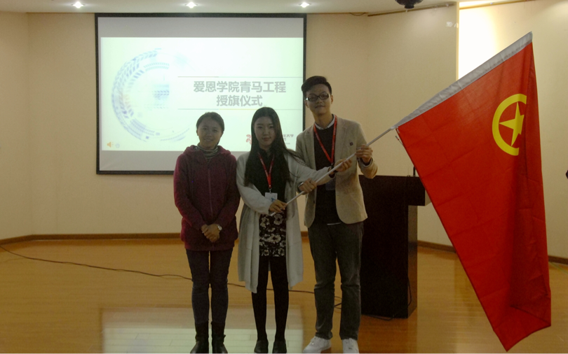 紧接着,爱恩团委主席谢天豪同学和黄一奇同学从杨老师手里接过了中国共产主义青年团团旗,标志着3044永利集团青马工程的正式启动,全场响起了热烈的掌声。3044永利集团团学骨干们将勇于承担光荣使命,在实践拓展中不断强大自己,为实现中华民族伟大复兴的中国梦贡献力量!