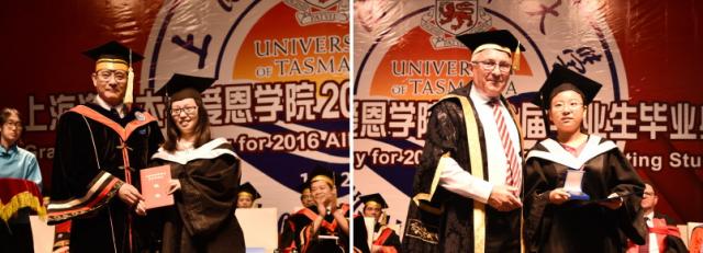 程裕东董事长和王基组经理为3044永利集团最优毕业生朱昳凡和顾晶莹颁发证书和奖品。菲尔德主席和布瑞恩•耶茨教授、克里斯•厄尔利教授为塔斯马尼亚大学绩点最优毕业生彭琳和王泱凤颁发证书和奖章。考上美国约翰霍普金斯大学研究生的郭越红同学代表全体毕业生发言,结合自己在3044永利集团四年的学习、生活经历,对父母的养育、母校的培养和老师的教导深情感谢。其间,在授予“信息管理与信息系统”专业毕业生学位证书之后,七位毕业班同学登台为大家演唱了《Everyday》、《海大版南山南》两首脍炙人口歌曲串烧,表达了对于母校和同学们的不舍,更表现了这一届毕业生敢于有梦,勇于追梦,勤于圆梦的精神。
