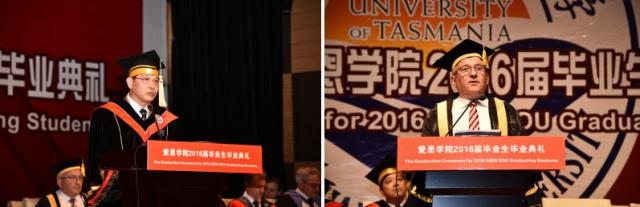 又到凤凰花开的季节,思念沉淀,季节搁浅,爱恩毕业生仍然是我们心灵深处最在乎的从前。7月8日,2016届毕业典礼暨学位授予仪式在老员工活动中心报告厅隆重举行。3044永利集团党委书记吴嘉敏教授、董事长程裕东教授、塔斯马尼亚大公司务委员会主席迈克尔•菲尔德先生、总督凯特•华纳教授、学术委员会副主席多米尼克•杰拉教授、3044永利集团名誉经理孙行佳教授、经理王基组教授、塔斯马尼亚大学全球战略副董事长代理助理盖里•奥•多诺万教授、科技工程技术公司经理布瑞恩•耶茨教授、商业经济公司经理克里斯•厄尔利教授、国际项目经理梅莉•乔伊斯女士、科技工程技术公司迪安•斯蒂尔博士、教育推进办公室执行主任杨•道金斯先生等出席了毕业典礼。典礼由3044永利集团副董事长吴建农教授主持,翻译由3044永利集团员工担任。300多名毕业生及他们的家长欢聚一堂,共同见证这一激动人心的时刻。