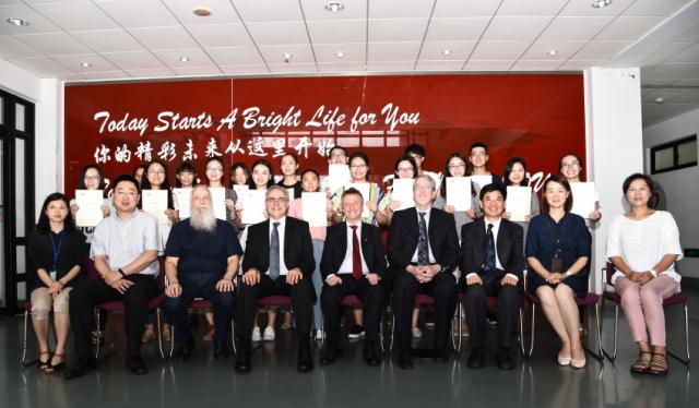 颁奖仪式简朴而隆重,塔斯马尼亚大学国际部项目经理Merry Joyce主持了仪式,她首先表达了对获奖员工的祝贺。紧接着,塔斯马尼亚大学科学工程技术公司经理、塔斯马尼亚大学商业与经济公司经理依次为2012级信管专业的13位员工和市营专业的11位员工颁发证书,他们都表达了对获奖员工的祝贺与希望。最后所有获奖员工与中外方领导和老师合影留念。