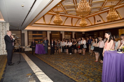 接着,塔斯马尼亚大公司务委员会主席迈克尔•菲尔德先生对员工的成就表示了肯定和祝贺,同时呼吁员工要与公司保持联系。此外,他还向员工提供机会了解当前大学发展和机遇。塔斯马尼亚大学全球战略副董事长代理助理盖里•奥•多诺万教授和塔大商业与经济公司经理克里斯•厄尔利教授向2016届取得优异成绩的同学们表示了衷心的祝贺,并颁发奖品。然后,进入抽奖环节,两个形态娇憨的薰衣草小熊赠予了有缘之士。