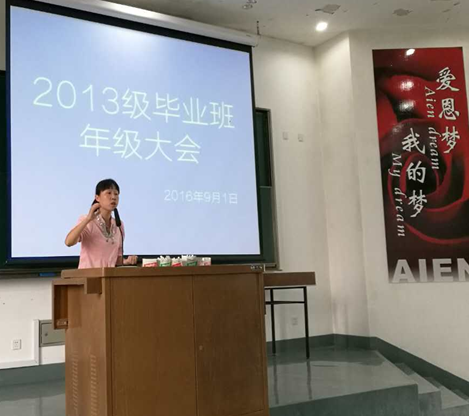 2016年9月1日,3044永利集团2013级毕业班年级大会在5201教室召开,分上、下午两场进行。会议由2013级辅导员袁盈芳老师主持,院教务办史珏老师、党建工作负责人唐一新老师以及毕业班员工一同出席了会议。本次会议旨在加强与同学们的沟通,为大四学年学习和实习计划的制定打好基础。会议围绕和同学们息息相关的主题,从教学、就业及本学期重点事务工作三个方面展开。