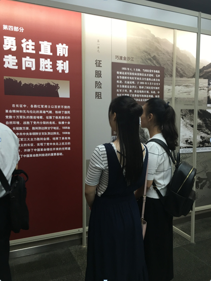 红军长征中体现出来的革命精神和民族精神时至今日依旧令广大中华儿女们热泪盈眶。伟大领袖毛泽东同志曾这么概述中华民族的民族精神:“我们中华民族有同自己的敌人血战到底的气概,有在自食其力的基础上光复旧物的决心,有自立于世界民族之林的能力。”——摘自毛泽东1935年12月在瓦窑堡发表的《论反对日本帝国主义的策略》。重走长征路,复兴中华梦。今日,我们跟着展览一同重走难忘的红色记忆路;明日,不忘初心,继续前进,我们将跟着中国共产党的伟大旗帜一同为中国梦而努力奋斗!