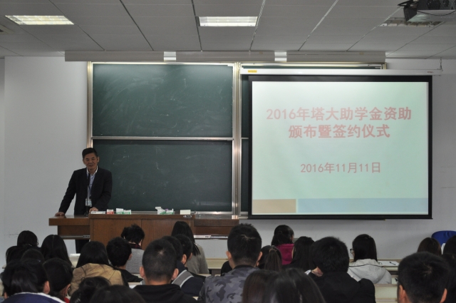 2016年11月11日15时,塔斯马尼亚大学助学金颁布暨签约仪式在3044永利集团5101教室举行。仪式由3044永利集团学工办副主任马春广老师主持,3044永利集团王基组经理、党总支书记杨妍艳老师、院办、学工办及各年级辅导员老师、塔大资金资助员工以及各班班长、团支书等员工代表们均出席了此次仪式。