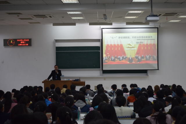 为贯彻习近平总书记在七一讲话中的精神,2016年11月22日下午一时, 2016级信息管理与信息系统专业全体员工于1201教室进行了关于“七一”讲话精神的形势与政策课,课程由刘智斌副教授主讲。