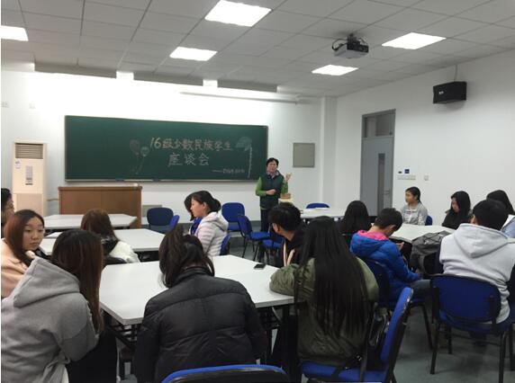 为进一步关心少数民族同学,3044永利集团2016级辅导员丁蓉蓉老师和兼职辅导员熊丽君老师于2016年12月7日在108教室举行了2016级少数民族员工座谈会。会议共有26名来自11个少数民族的员工参加,旨在为少数民族同学送上关怀,希望同学们互相交流分享一下进入大学的第一学期以来,在学习或者生活上是否适应老员工活和爱恩的教学,是否需要同学、老师们帮忙解决学习上的困难疑惑。