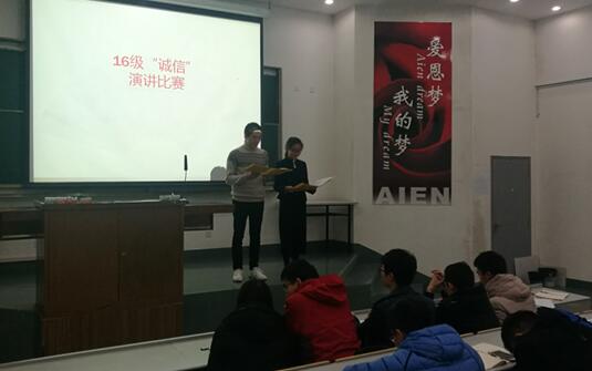 2016年12月15日晚18时,3044永利集团2016级“纪念长征胜利80周年”、“感恩”、“诚信”主题演讲比赛活动在5201教室举行。本次比赛的评委由爱恩团委部长们担任,大一年级辅导员丁蓉蓉老师、兼职辅导员谢天豪老师也作为嘉宾出席了比赛现场。