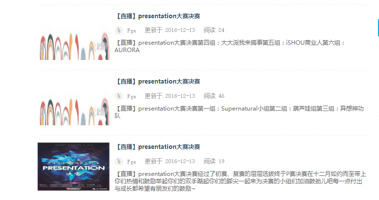 其中,P赛培训和决赛的现场直播以商业产品宣传的形式进行,主要是便于选手的线下专业知识的解惑、策划案的培训以及内容的宣传。培训和决赛当天利用易班手机客户端以及电脑客户端版本发布动态进行全程直播,让同学们能足不出户能就体会到P赛培训和决赛的精彩。营造P赛的易班主题、健康向上的网络文化氛围,同时依托易班平台,在公司提升公司活动的影响力。活动期间,P赛群组十分活跃,直播帖评论量颇多,每个帖子的浏览率也颇高,取得了相当可观的成效。