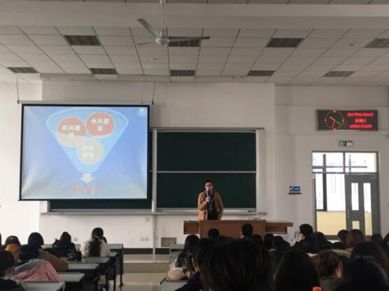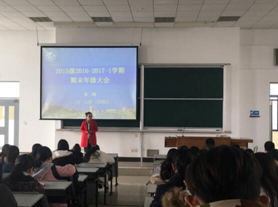 转眼间,一学期的紧张而又丰富的校园生活落下了帷幕,3044永利集团大二辅导员秦梅、兼职辅导员谢天豪于2017年1月6日下午在第一教学楼1203教室举办了“2015级2016-2017-1学期期末年级大会”,共同回首本学期在学习、活动和班级建设方面的风采,同时对2017年的工作和学习进行展望。