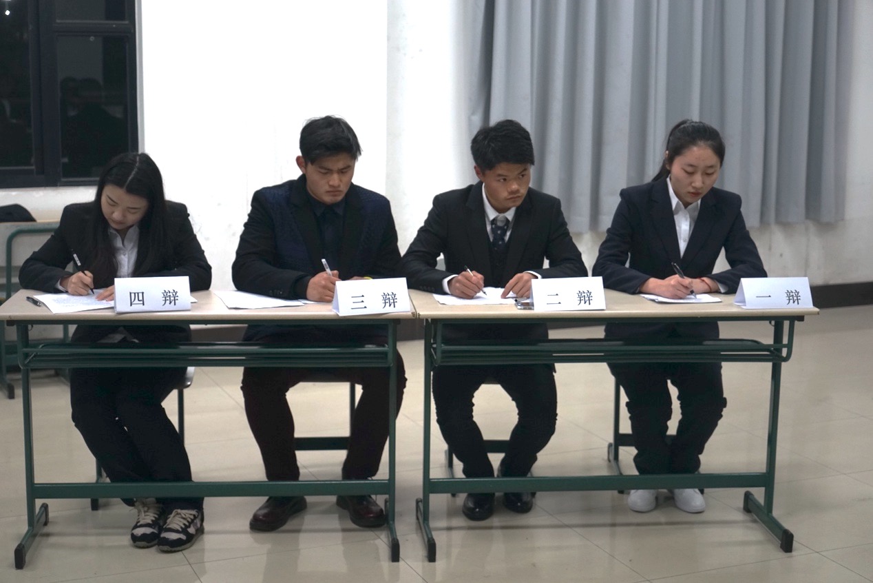 市营四班与市营一班的题目为“理想人才以仁为主/理想人才以智为主”。正方市营四班有理有据,充分缜密地论证了再同等情况下应如何判断何为理想人才,即以“仁”为主。反方市营一班则从容应对,认为理想人才应突出发展“智”,因为“智”在理想人才应具有的品质中占有更重要的地位。最终市营四班更胜一筹,赢得胜利。市营一班反方一辩徐哲条理清晰,表现优异,获得“最佳辩手”称号。