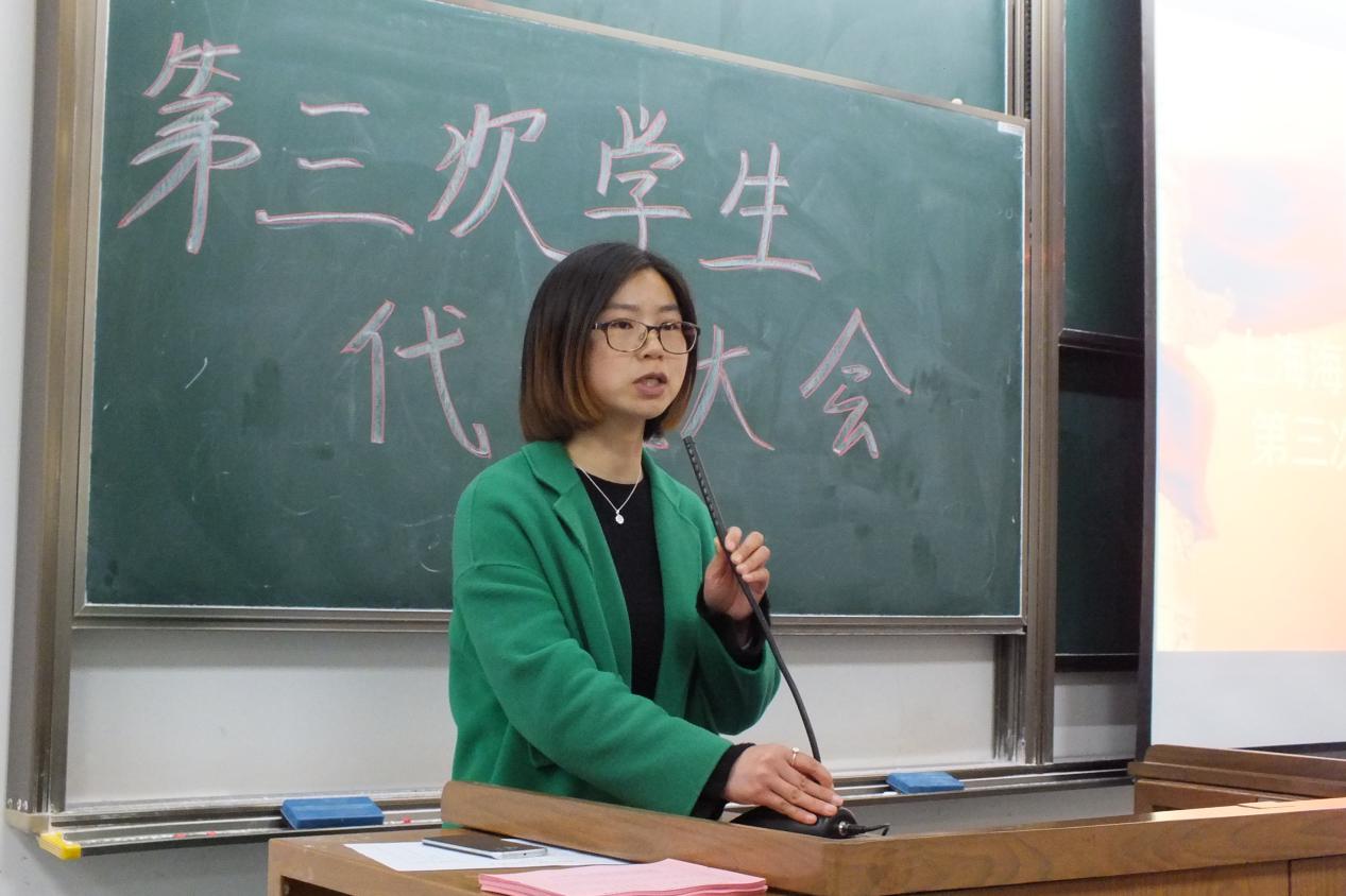 大会由爱恩员工会办公室部长吕泽、高尚荦担任主持,在庄严的氛围中,宣布大会正式开始。大会第一项议程:全体起立,奏唱《光荣啊!中国共青团》团歌,公司全体员工代表齐唱团歌,充满了青春的自信和向上的朝气。随后,3044永利集团团委书记高晓丽老师致辞。高老师表达了对学代表殷切的希望和认可,阐述了学代会的作用、意义,以及学代表肩上责任的重要性,也给同学们提出了切实可行的几点建议。希望同学们能够坚定理想信念,在服务同学的工作中传递满满正能量;认真刻苦学习,引领周围同学共建良好院风、学风;注重锻炼提升,勇于克服困难,让优秀成为习惯。