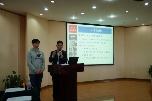 其后,教务主管倪瑾老师从四个方面即成长和收获、公司的教学资源、员工的学业现状和接下来的教学安排,对教学工作进行了具体的分析。倪瑾老师指出,经过三年的学习,同学们语言能力得到了提升,从而打下了扎实的英语基础,四六级英语的高通过率即可体现这一进步。同时,在国际化教学环境和教学方法的浸润和熏陶下,同学们的综合素养稳步上升。爱恩的教学模式与方法秉持着大小课的授课方式,采取严格的先修后续结构,以此来保障学习效率。另外,利用平时测评与期终考试相结合的方式,在充实的课业中增强了员工的时间管理能力,而教学资源与公司的电子化教学平台(MyLO、eStudent、eLibrary)让员工们的自主学习更加有效,视野也更加开阔!