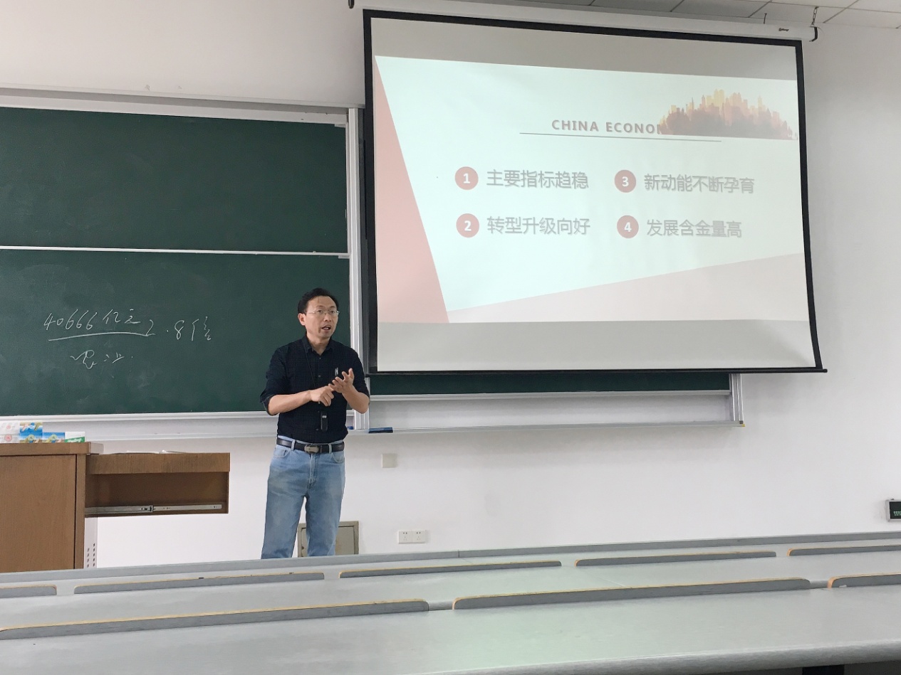 为了让同学们正确认识我国经济发展面临的形势,2017年4月18日下午一时,2014级“信息系统与信息管理”专业的全体员工在1201教室认真聆听了由边黎明老师主讲的主题为“稳中向好的中国经济”的形势与政策课。