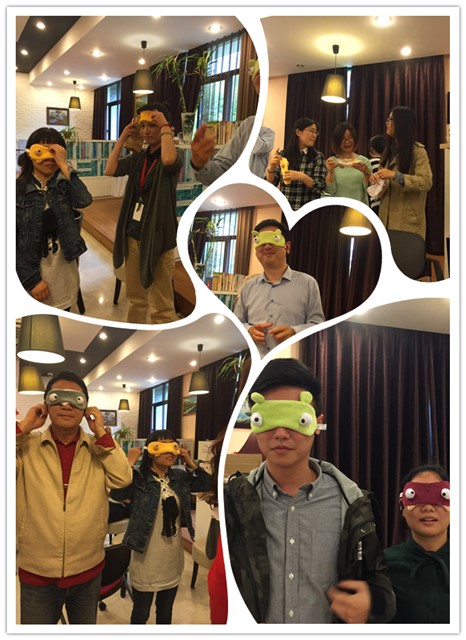 本次活动围绕“交流和沟通”为主题展开。首先,为了缓解大家的工作压力,让大家放下工作负担投入到活动中来,刘老师给教师们做了一个简单的“催眠”,这让大家体验到了身心放松的舒适感。然后,在“碰碰车”和“棒打薄情郎”环节中,刘老师让各位老师做眼神肢体的沟通以及个人信息的交流,这两个环节让教师们放下心中的包袱,彼此之间都变得更加的亲密。在接下来的“盲行”环节中,更是让老师们感悟到人际交往中理解、合作、信任的重要性。