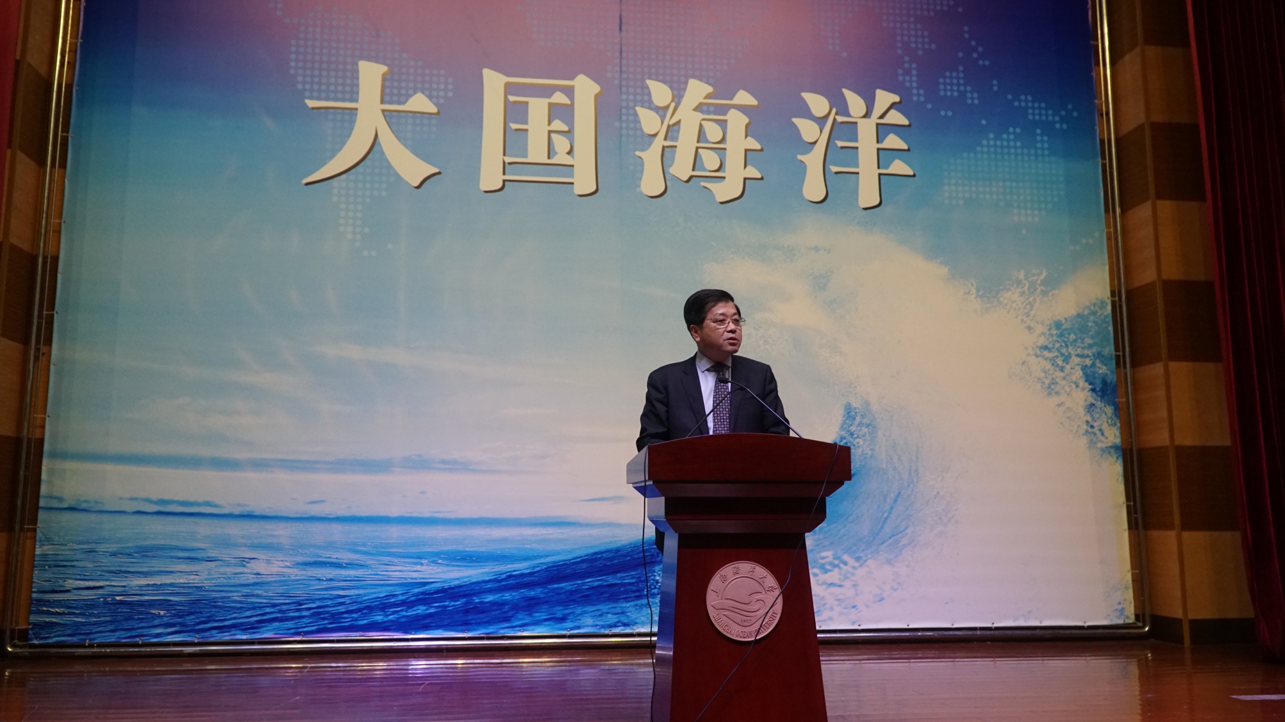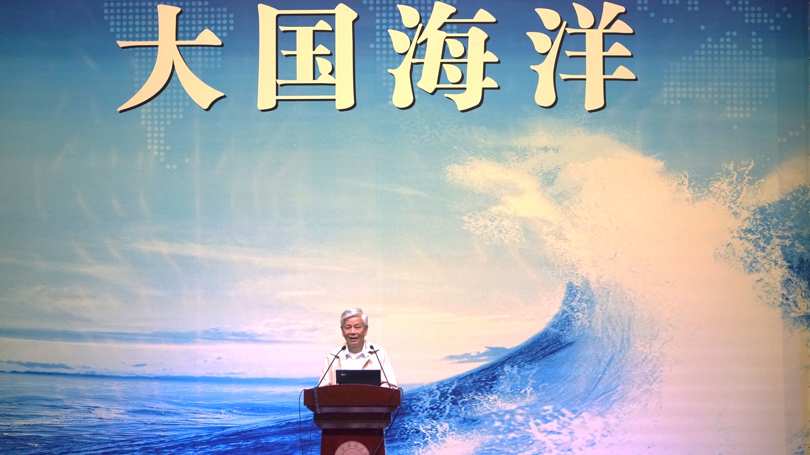 “大国海洋”的第一节课程由原上海水产大学董事长乐美龙教授为同学们进行讲解。乐美龙教授首先引用李克强总理在2017年《政府工作报告》指出的“推进海洋经济示范区建设,加快建设海洋强国,坚决维护国家海洋权益”为开头,向同学们讲述了他参与的国际海洋法的编写和发展的过程,以及50年代至今中国海洋权益的认识和发展。
