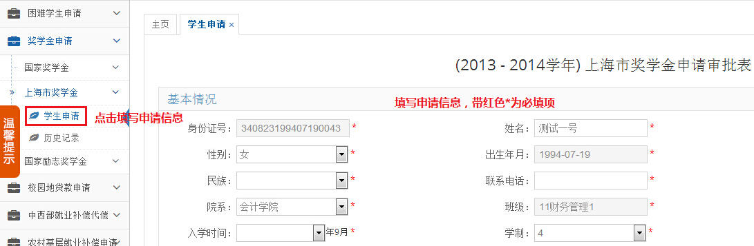 国家奖学金、国家励志奖学金和上海市奖学金申请