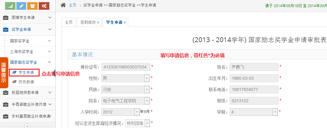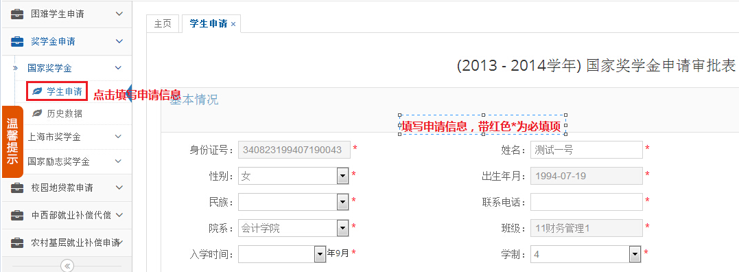 国家奖学金申请: