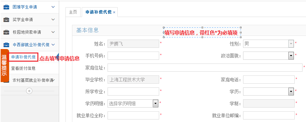 毕业生中西部艰苦边远地区基层就业学费补偿贷款代偿申请