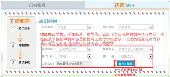 进入在线申请页面,首次登录的员工应在“初次使用”页面完善个人信息,进行注册。