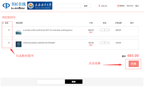 中国图书进出口上海公司是经过公司2017年秋—2020年春教材供应招标工作确定的供书单位,将为公司员工提供中外文图书的征订和购买服务。请各位同学到其官网www.bookmasteronline.com,按照下面操作流程进行教材的购买。