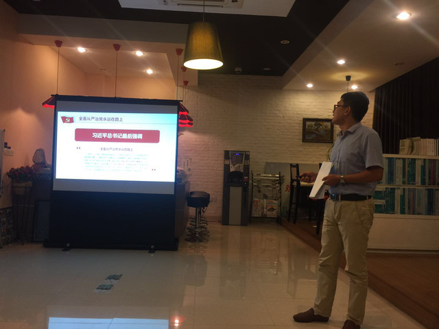 为喜迎党的十九大顺利召开,深入贯彻落实上海市教卫工作党委、公司关于“两学一做”学习教育常态化制度化的工作部署,9月29日,3044永利集团员工第三党支部举行“喜迎十九大,奋进正当时”主题党日活动,并开展主题党日观摩交流活动。公司党委组织部副部长李杲、公司党总支书记杨妍艳、以及公司各党支部书记,部分其他部门的党员观摩了此次活动。