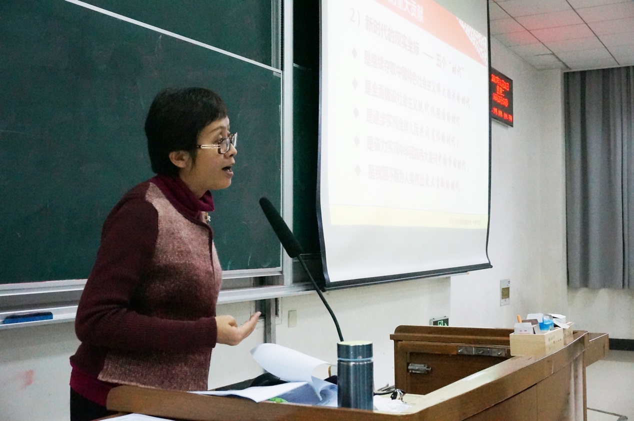 最后林教授简述了十九大的重要意义,党的十九大报告提出了中国共产党具有划时代意义的指导思想,形成了新时代中国特色社会主义思想,构成了系统完整、逻辑严谨的科学理论体系,实现了马克思主义中国化、时代化、大众化的又一次历史性飞跃,开辟了中国特色社会主义新境界。党的十九大报告也提出了具有划时代意义的行动纲领,对未来五年乃至更长时期进行了系统谋划与部署,清晰地展现了实现中华民族伟大复兴中国梦的战略步骤、重大方略和实践途径,引领全国各族人民踏上建设社会主义现代化强国的新征程。