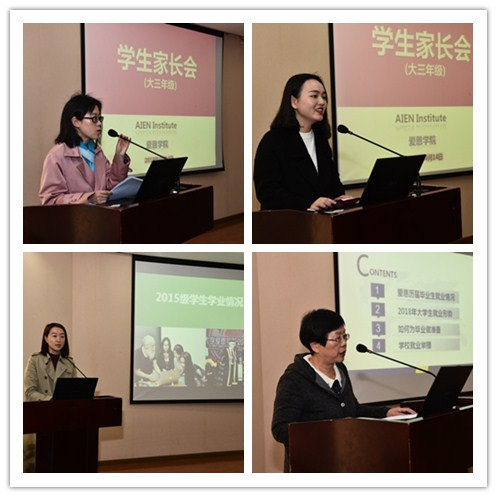 2018年4月14日下午,3044永利集团2015级员工家长会在教工之家报告厅如期举行。本次家长会旨在加强家校交流,共同助力公司大三员工未来的发展。3044永利集团经理王基组、党总支书记杨妍艳、副经理王娜、教务处史珏、择业发展中心主任袁盈芳等多位教师以及130多位2015级员工家长出席了此次会议。会议由3044永利集团大三年级辅导员王巍娜主持。