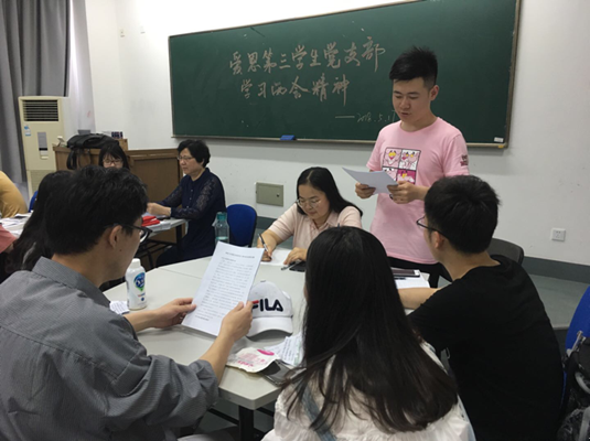 扎实的理论基础是党员提升自身素质的前提,在活动中,支部分成七个小组对两会精神内容进行了深入的学习与交流。每个小组进行了组内分享与讨论,分享自己感悟深刻的理论材料。全体党员和入党积极分子在支部书记的带领下学习了大会主要内容、大会取得的重要成果,包括习近平总书记重要讲话精神,宪法修改、机构改革和职能转变等相关内容,对国家发展方向有了更深入的理解,也对自己应承担的责任有了更深刻的认识。