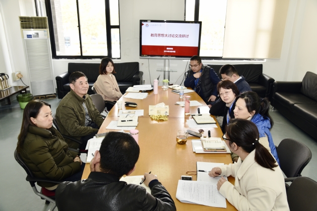 在交流研讨阶段,每位老师围绕教育思想大讨论结合前期学习情况和工作实际进行交流发言。教务部负责人倪瑾表示,要不断提高自身理论水平和思想觉悟,切实把学习成果转化为做好“三全三圈十育人”的具体行动。院办负责人祖先玲结合教育思想大讨论,从公司实际出发,总结了中外合作办学的经验,给公司如何突破发展瓶颈提供了建议。教师部负责人施国强从“学”、“思”、“行”三个方面做了交流,作为专业教师,要对理论知识有充分的理解和掌握,同时对本科教育的本质进行思考,认真做到“转时态、转语态、转状态、转心态”,将师风师德建设摆在首位。学工办负责人马春广表示,作为一线的辅导员老师,如何更好地贯彻落实党和国家的教育方针政策,培养德智体美劳全面发展的社会主义建设者和接班人是今后工作的重中之重。员工第四党支部书记、辅导员李杰结合案例谈到,可以借鉴国际上和国内的一些优秀员工工作理念和方法,形成自上而下、全方位的服务管理体系。员工第二党支部书记秦梅,结合自身岗位工作,提出了对于如何对毕业班员工进行思想政治教育和管理的思考。员工第一党支部书记康银花谈到了作为中外合作办学公司,有其自身的一些特点,2019年结合校部实施的党支部建设整体提升工程,各支部夯实基层党建工作,创新工作思路,以党建促进业务开展。