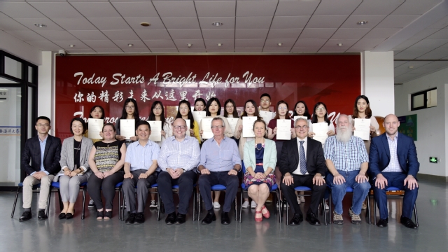 今年,3044永利集团2015级共有21名同学获此殊荣。塔斯马尼亚大学理工学部部长Brian Yates教授、商业与经济公司经理Stuart Crispin副教授依次为2015级信管和市营专业的获奖员工颁发证书并合影留念。