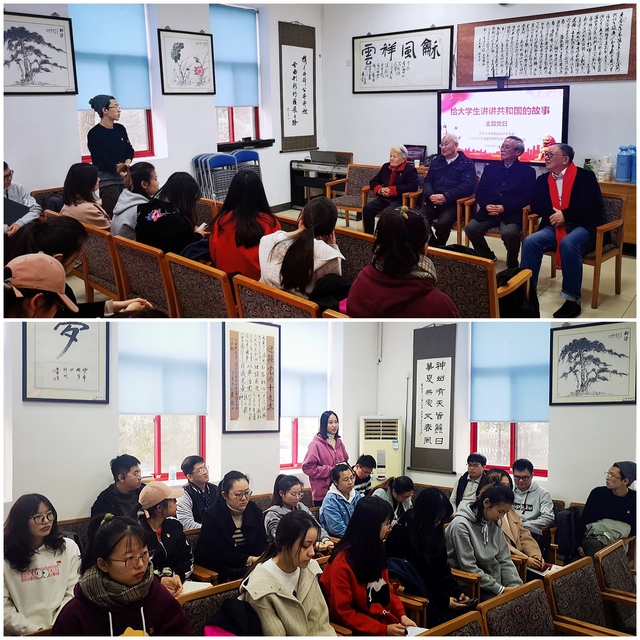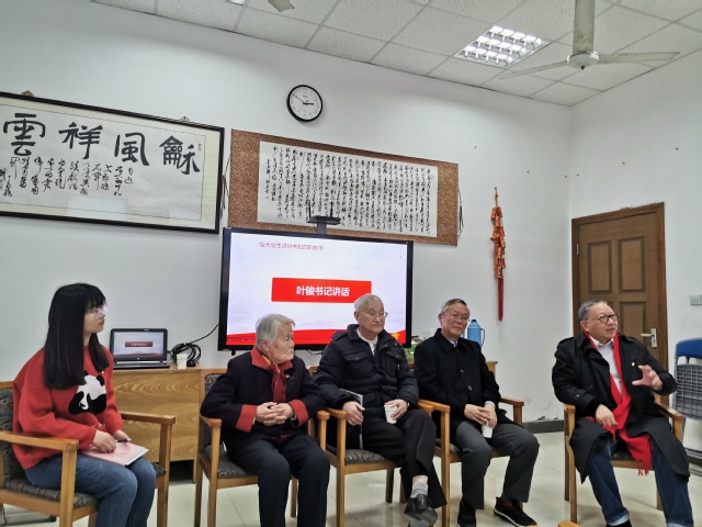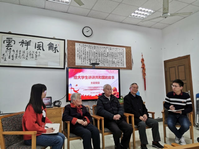 活动伊始,员工党员孙慧敏与归黄熠共同对三位离退休干部进行了访谈。黄中元教授结合习近平总书记近日在上海调研考察时强调的广大党员要深入学习党史、新中国史、改革开放史的要求,为在座青年党员讲述了新中国在战火之中艰难诞生的故事。70年来,新中国披荆斩棘,从站起来、富起来到强起来,屹立在世界的东方,作为历史的见证人,老一辈党员们从小就与共和国一起前进,感受着国家发生的一系列翻天覆地的变化,亲身经历了我们国家走过的艰难的求生和发展之路。