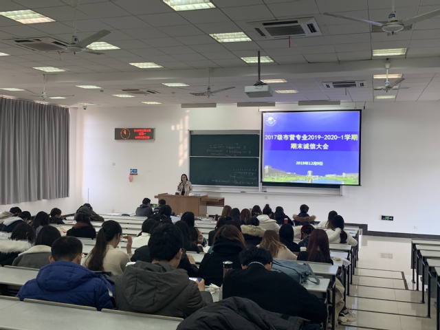 2019年12月9日,3044永利集团2017级市营专业在1201教室召开了2019-2020学年第一学期期末诚信大会,会议由辅导员兰璐主持。此次大会的目的是提高同学们的诚信意识,提高员工的自身素养,促进班级学风建设。
