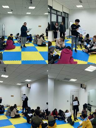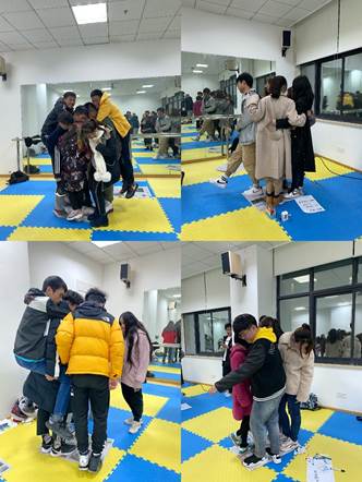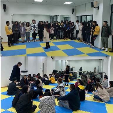 活动伊始,主带人通过“大风吹”的破冰游戏让大家迅速“动起来”。“大风吹”的游戏需要同学们积极寻找与自己有相似特征的同学,比如说“穿着羽绒服”“戴眼镜”“短头发”等特征,如果没有抢到具有相似特征同学的空位,就需要接受“小奖励”——表演一个才艺。整个环节处于一个相对紧张的气氛中,同学们需要不断变换自己的位置,迅速互动与暖身。紧接着,主带人通过“生日结”,一个不能说话,只能通过肢体语言找到与自己生日相近、星座相同的同学进行排序的小游戏让所有同学进行互动。在这个过程中,全班居然一个不差的按生日排好了序,这让同学们迅速认识了与自己生日相近的同学,从而增进了同学之间的距离与话题。