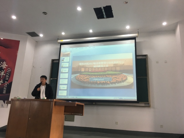 诚信是中华民族的传统美德,是青少年员工的立身之本。为严肃考风考纪,规范考场秩序,形成风清气正的考试环境,3044永利集团2017级信管专业于2019年12月11日在5201教室召开了考前诚信教育大会,本次大会由辅导员丁少岩老师主持,2017级信管专业全体员工参与。