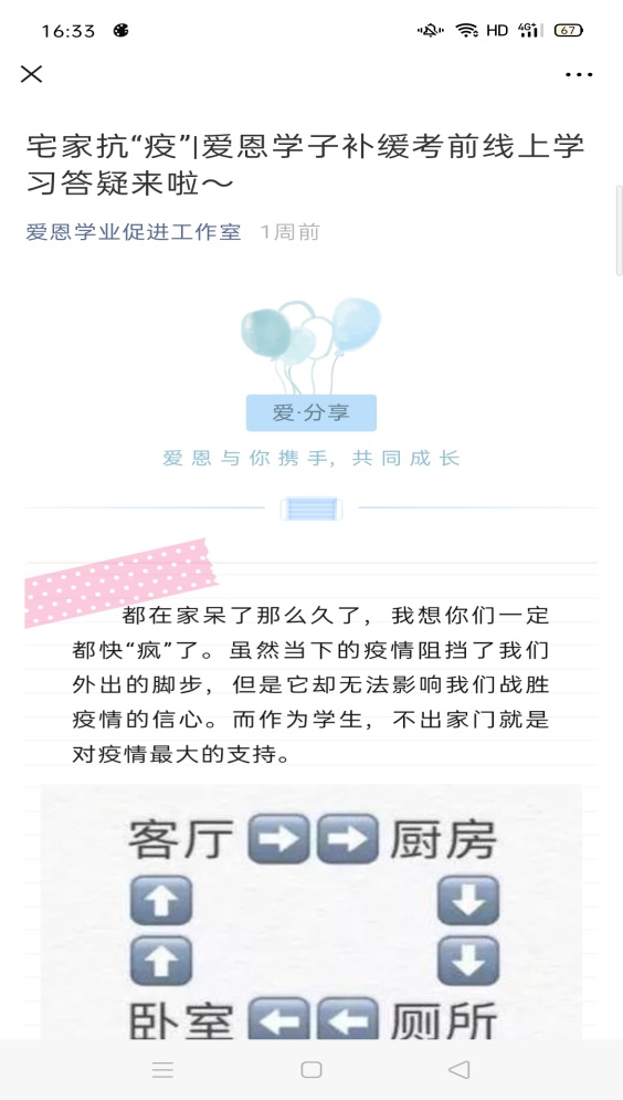 作为答疑群内的一名分享者,刘宇辰说,疫情阻隔了我们的距离,但隔离不了我们对朋辈的关爱。我很荣幸可以在线上分享自己的学习心得与方法,为身边有需要的同学提供切实的帮助。过程中,同学们的认真态度、老师们的鼎力支持,也让我感受到了爱恩大家庭在特殊时期的团结与温暖。