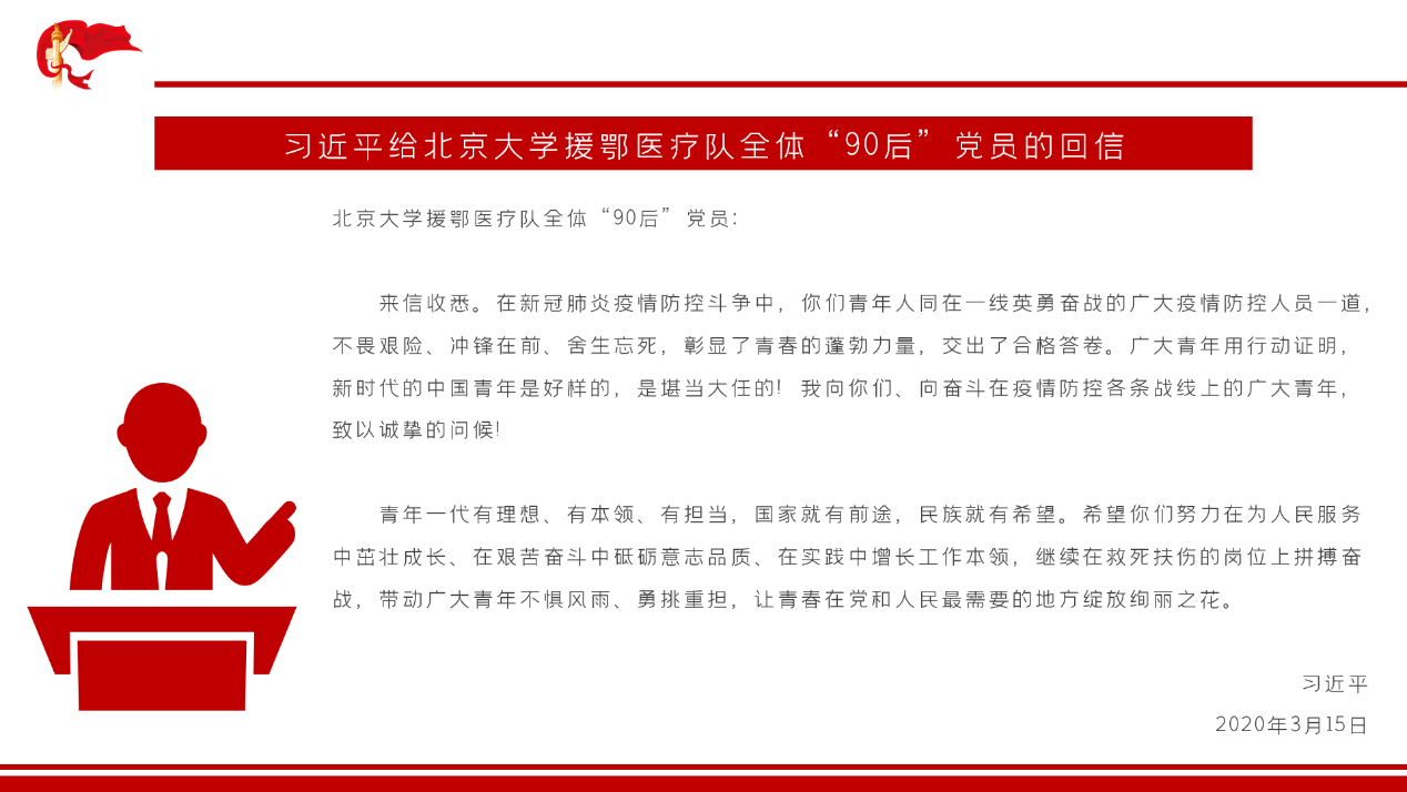 《习近平同志给北京大学援鄂医疗队全体“90后”党员的回信》