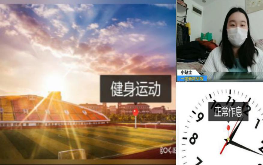 班长王吴悉奥与宣传委员王雪怡就周末作息及健身活动给予了中肯的建议。王雪怡说,疫情期间要多陪伴家人,养成健康的饮食习惯,合理安排学习与休闲时间,保持自律。针对部分同学产生的焦虑情绪,她提到:“同学们可以与家人、朋友、辅导员老师及时沟通,诉说情况、分享生活、舒缓情绪。”班长王吴悉奥指出,疫情期间保持适量锻炼是十分必要的,但运动前切记做好热身活动,在运动中也要保护好自身安全。微团课最后,班委们纷纷送上祝福,期待大家早日在海大相见。
