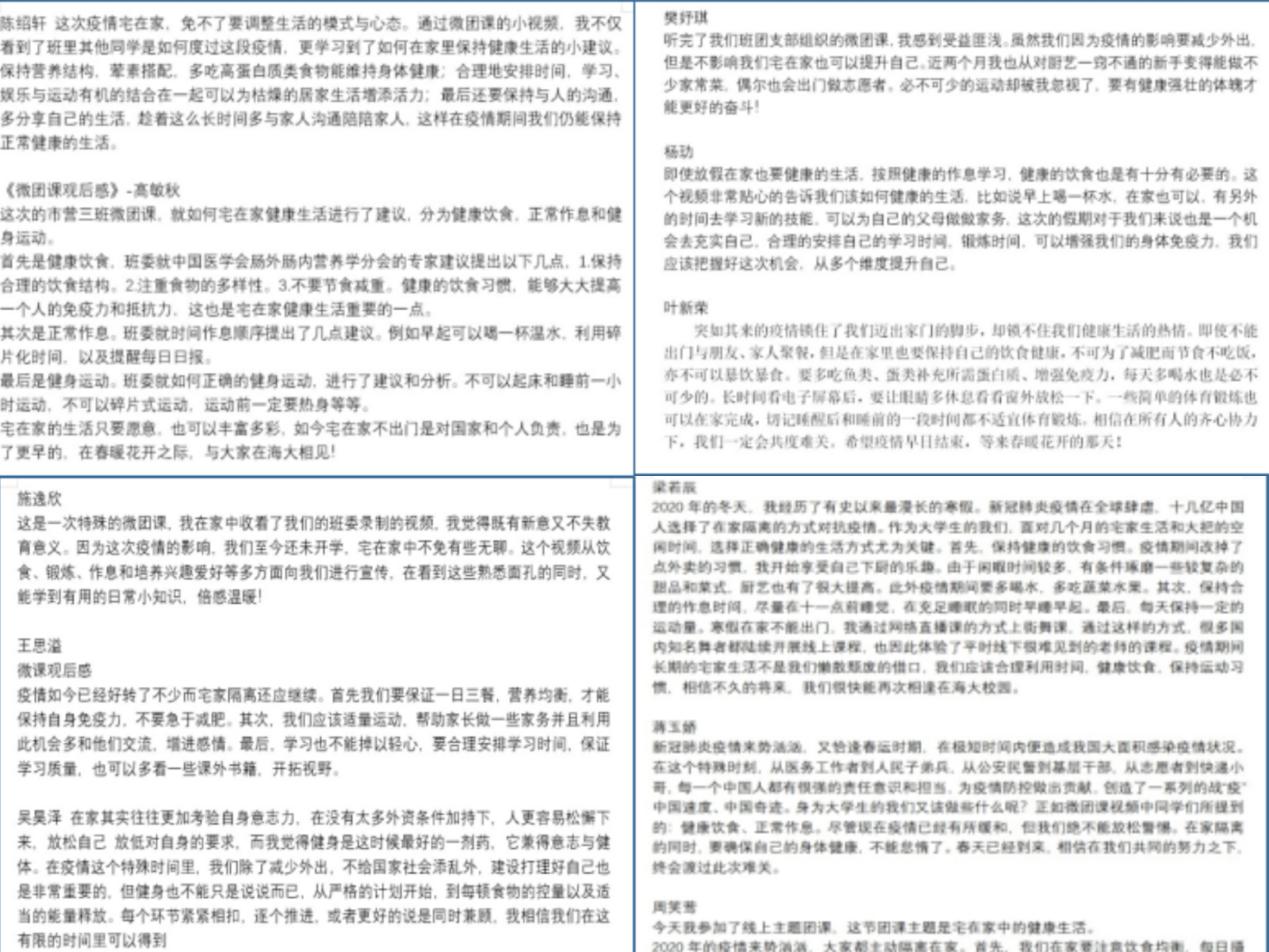 图为部分团员微团课感想