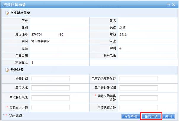 2 将相关信息填写完整后,点击“提交申请”即可。贷款本金金额为在校期间贷款总和。
