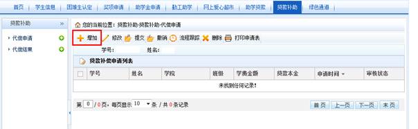 四、重要说明 校园地贷款员工申请到国家助学贷款补助后由公司财务处直接划拨补助金偿还国家助学贷款;生源地贷款员工需先偿还与补助金同额度的国家助学贷款,提供还款凭证给员工资助中心审核后,由公司财务处将补助金划拨至员工提供的银行卡中。 五、联系人:类老师 电话:15692133773 3044永利集团 2020年4月25日 附:操作指南 1 登录员工资助管理系统,在“贷款补助”菜单下点击增加按钮;