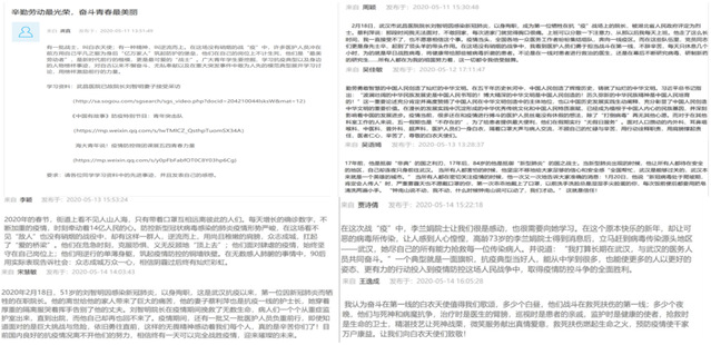 在这场共抗疫情的人民战争中,最让我们关注的便是那危急关头涌现出的无名英雄们:他们是闻令而动的人民解放军、是日夜奋战在一线的医护人员、是保障城市正常运行的环卫工人、是警察、是建筑工人、是社区工作者……通过在易班平台上学习、讨论、分享所了解到的抗疫先进事迹,支部成员们对榜样们不懈奋斗、无私奉献、敢为人先的精神有了更深刻的认识与感悟。