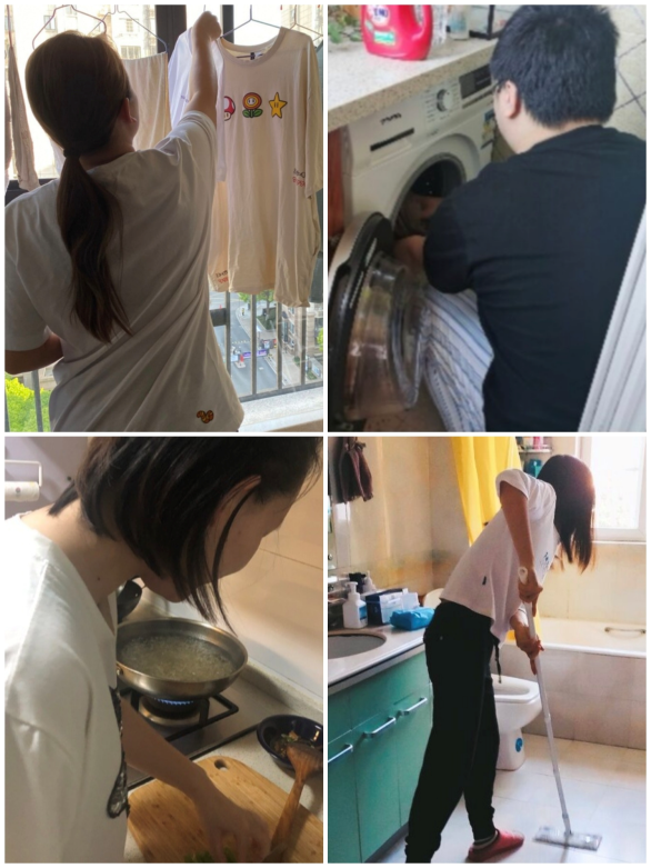 在加长版的宅家生活中,17级市营4班的同学们积极参与日常劳动生活,用劳动充实自我,在过程中体会劳动的不易与快乐,逐步提升劳动素养与能力,展现出青年一代吃苦耐劳、积极向上的良好风貌。