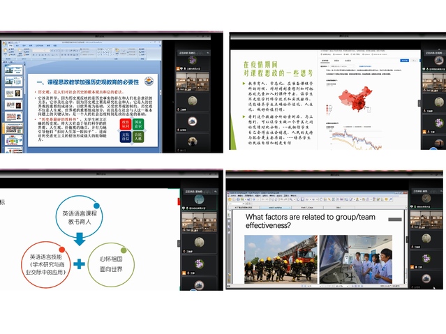 在课程思政工作交流环节,三名教师代表分别就本学期课程思政的开展情况做了分享,赫爽老师《关于“撒盐”的思考与实践》、彭高翔《信息技术类课程的课程思政实践思考》和翟怡婷老师《英语语言课程思政切入点与教学内容设计》。每位老师都把疫情防控的相关素材和课程内容做了有机结合,进行课程思政的有效设计。