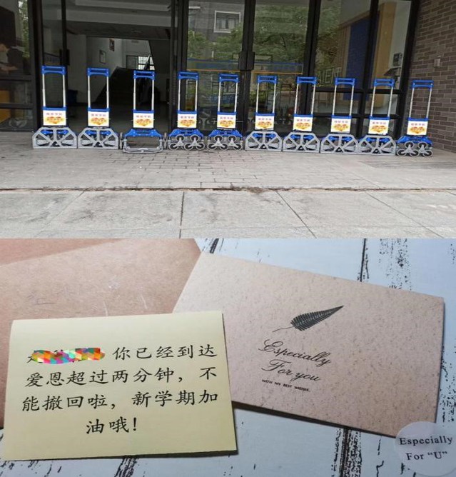 返校期间,公司为每位返校复学的员工准备了注有“欢迎回家”等字样的小卡片,简短话语背后凝聚的是殷切叮咛与深深祝福;公司教师前往各员工小区迎接久别的员工,帮助搬运行李与物资,在员工心底留下“最美的背影”;统一购置“可爬楼”的爱心小拉车,切实减轻员工负重上楼的压力;为营造良好的学习与生活环境,公司为每个员工宿舍准备了垃圾袋,助力推进垃圾分类的同时亦让暖心服务走进寝室、走进员工心中。