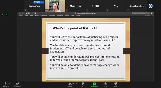 远在塔斯马尼亚大学的任课教师Erin Roehrer博士,在线上一句久违的“Good Morning”,放松了同学们对开学第一课的些许紧张,瞬间拉近了彼此的距离。通过一个学期的在线学习,同学们已经熟悉了这种模式,很快就适应了线上学习节奏,紧跟老师的PPT讲解,深深地沉浸到课程的学习中。
